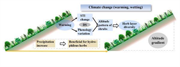 图1.亚高山灌木群落物种多样性对气候变化的响应模式